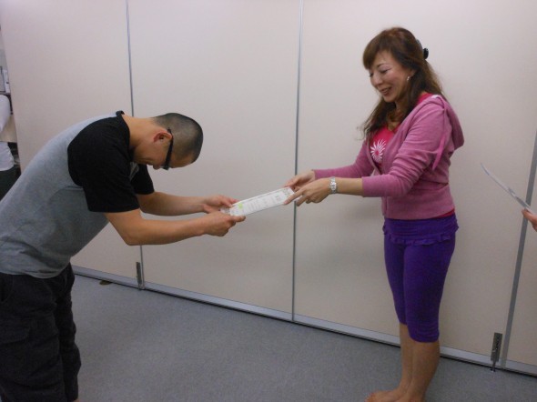 一人ずつ、美しい修了証を頂きます。