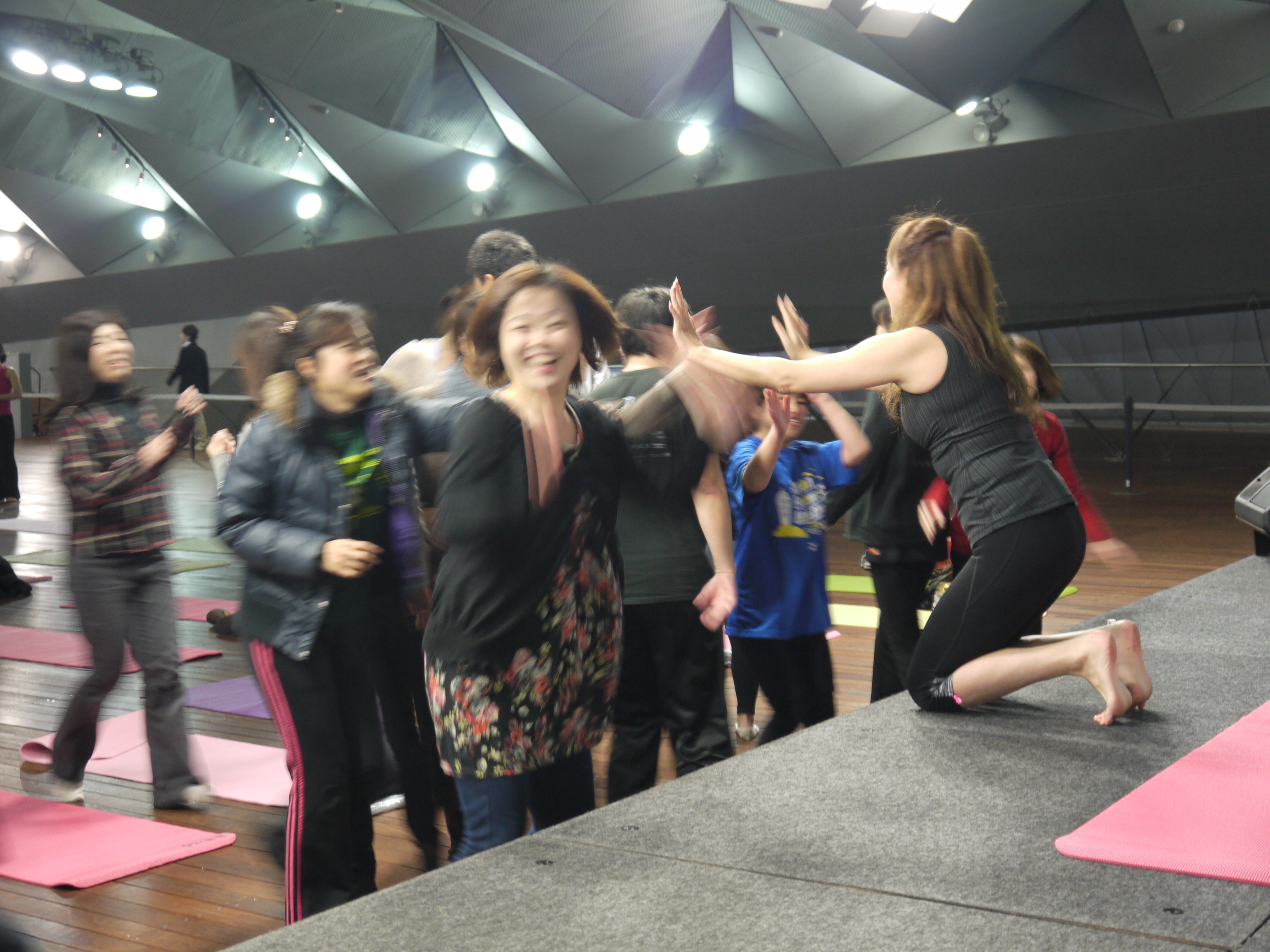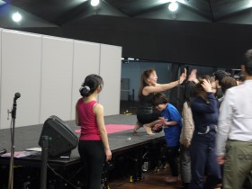 会場をダッシュしてきて、ステージ上のシュミッツ先生とハイタッチ!