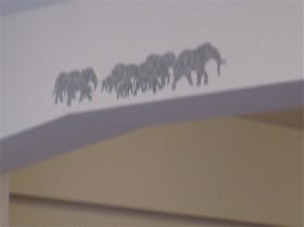 白壁に動物園がさり気なくオシャレに描かれた、明るいスタジオ。