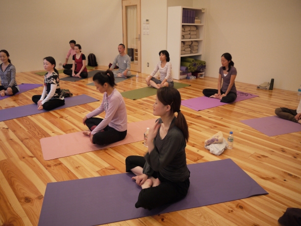 その後は、呼吸を深めるために考えられたヨガのシークエンスを行いま