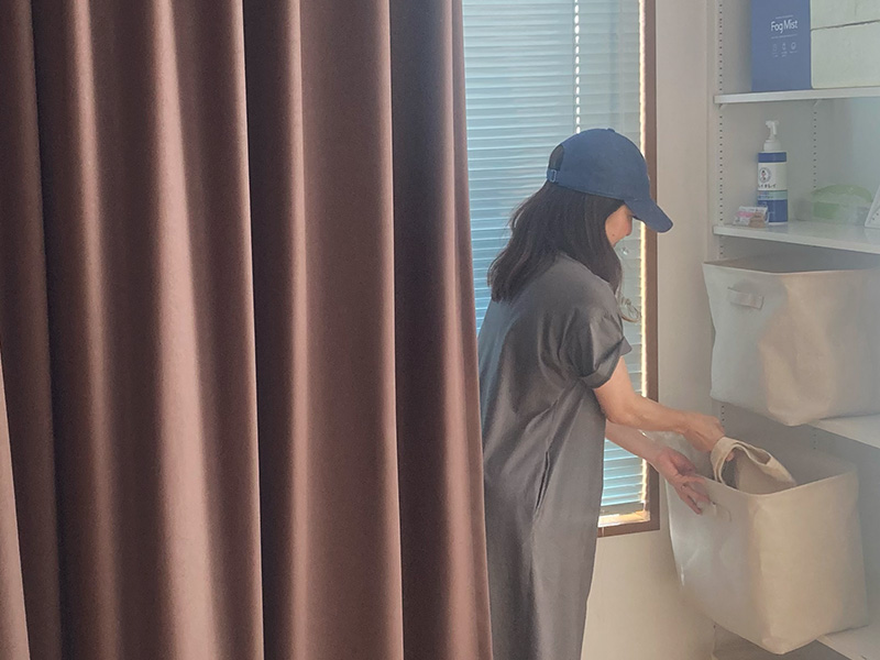 お着替えはカーテンの内側でどうぞ。